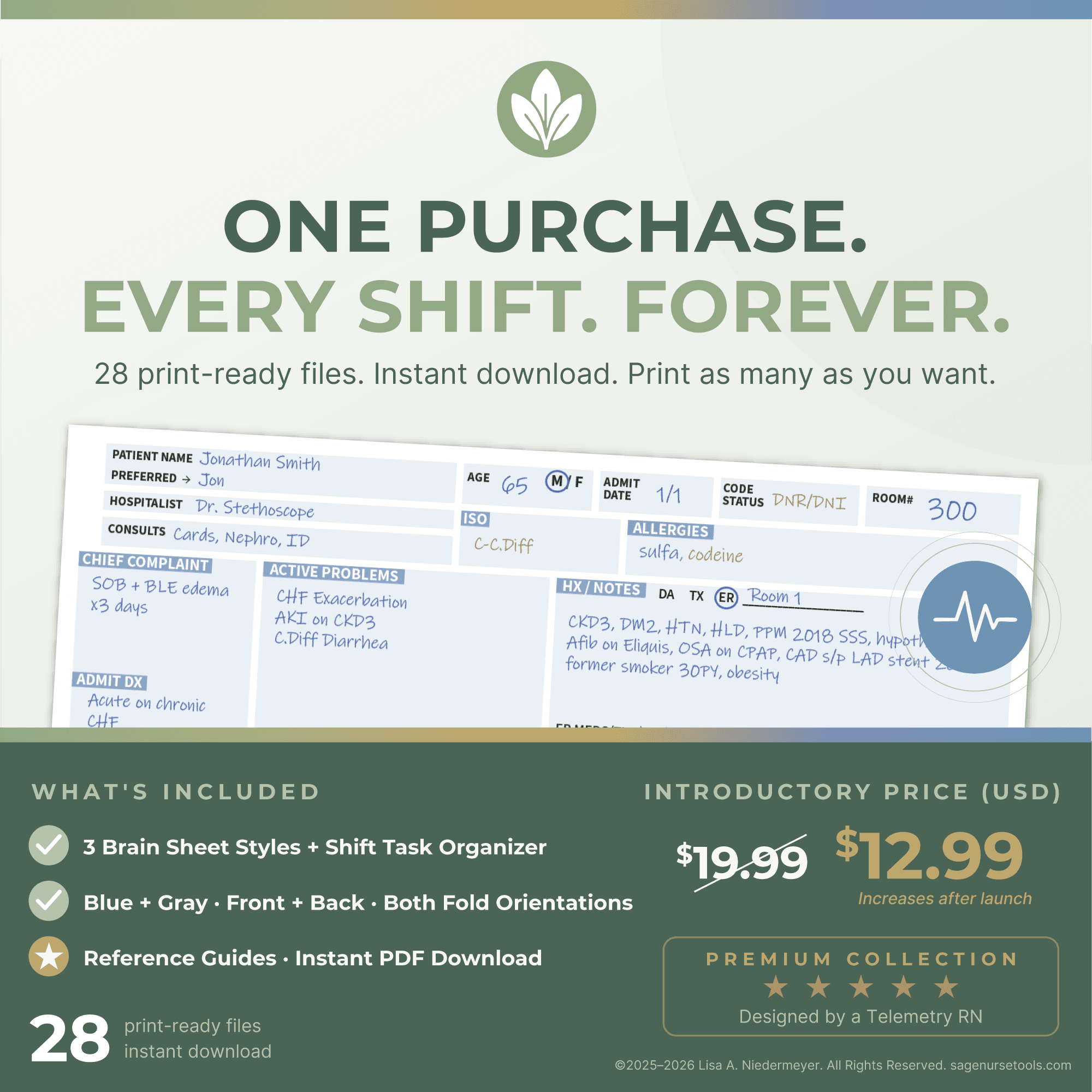 License: Single-user license. For personal use by one individual. You may print as many copies as you need for your own shifts. Sharing, redistributing, or reselling the files is not permitted.